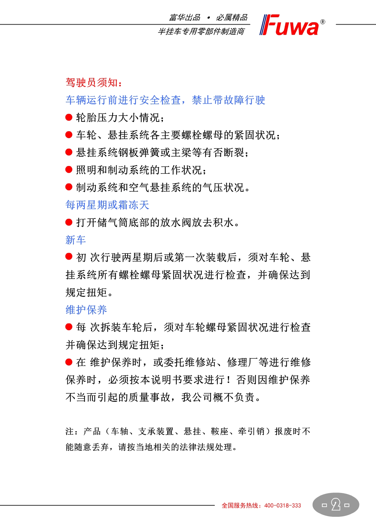 挂车轴【产品使用说明书】